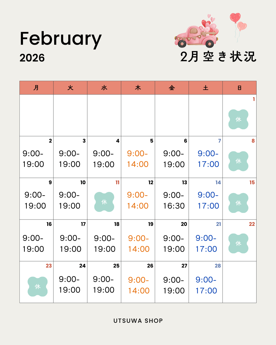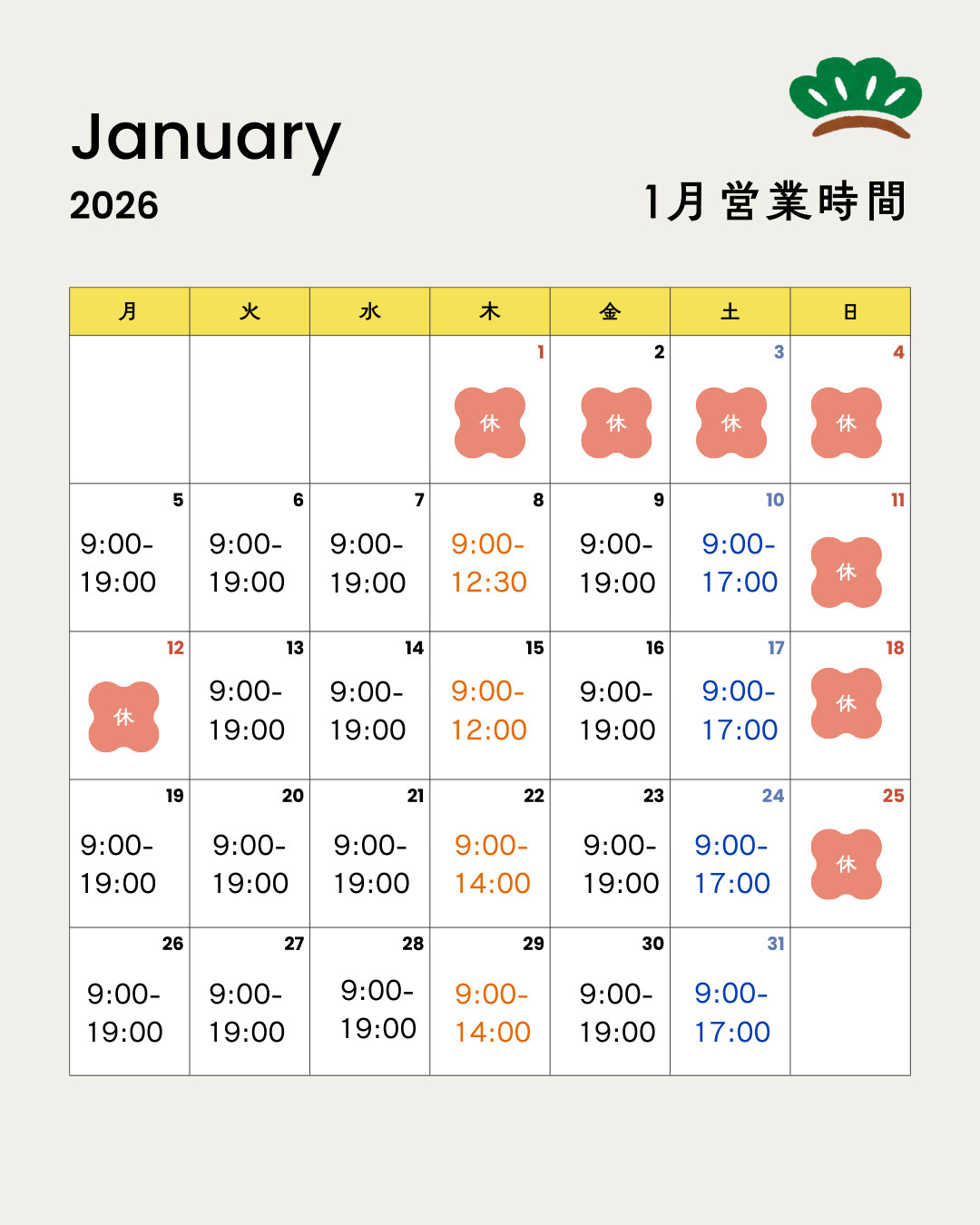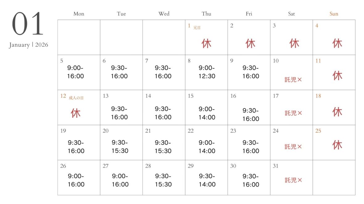2026年1月2月の営業について ※LINE予約は24時間365日可能です