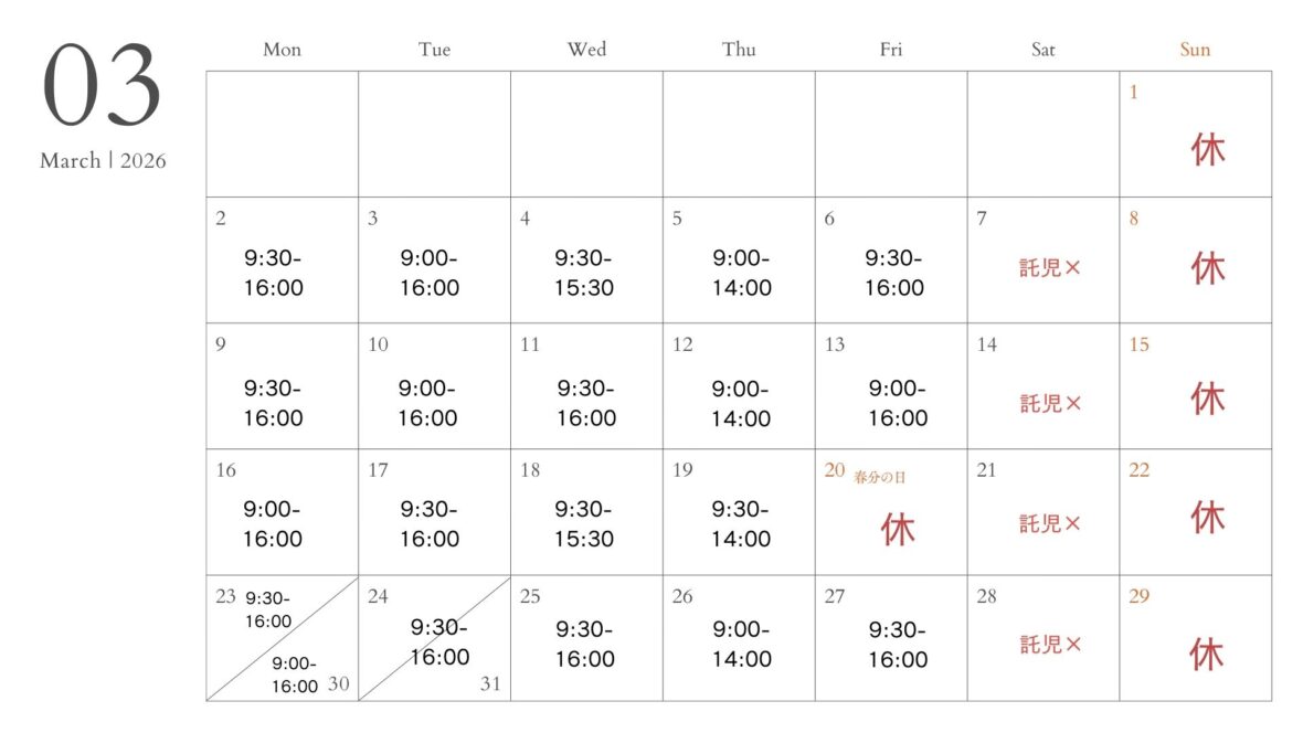 2026年2月3月の営業について ※LINE予約は24時間365日可能です