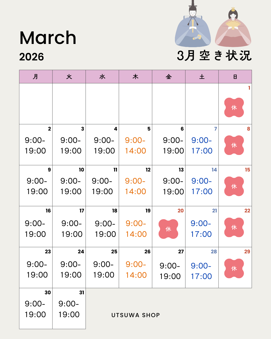 ≪3月営業時間≫
